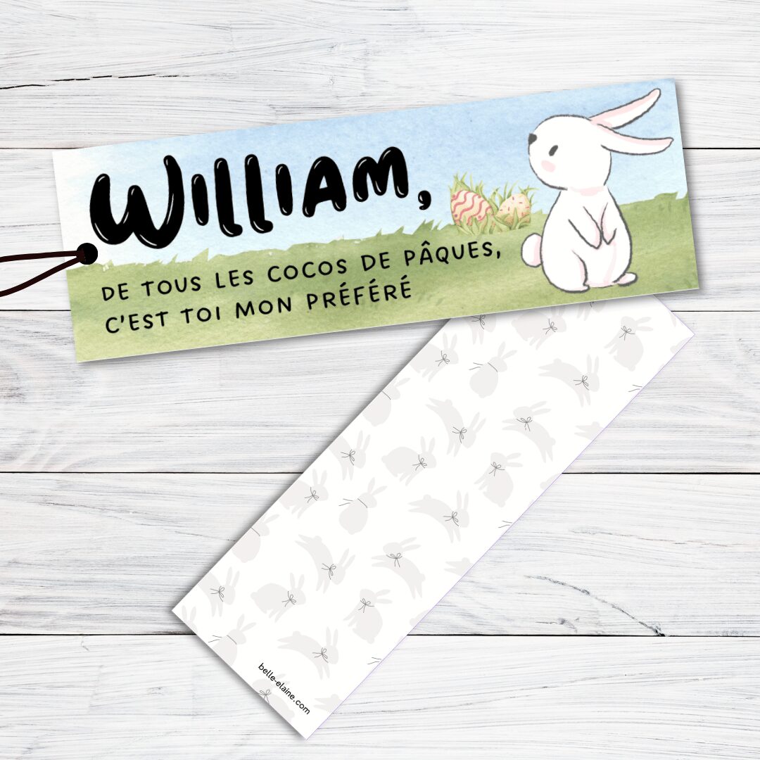 Personnalisez votre signet « Coco de Pâques » pour accompagner le livre Le Cachalot de Pâques, et offrez un cadeau tout doux et personnalisé à votre enfant pour Pâques.